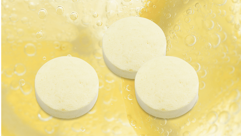 レモン味の炭酸タブレットは、ラムネ菓子のような食感で、噛むと爽やかな酸味が広がります。